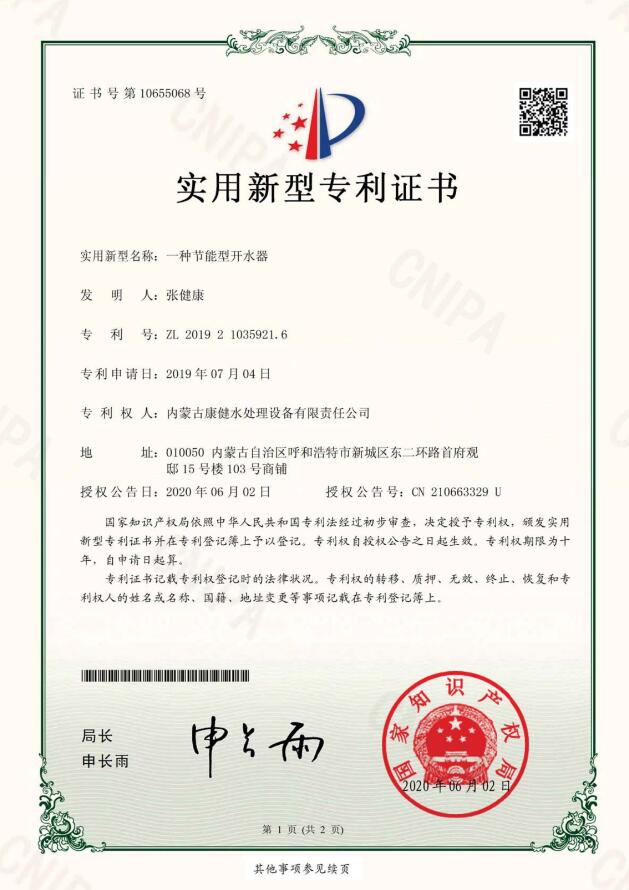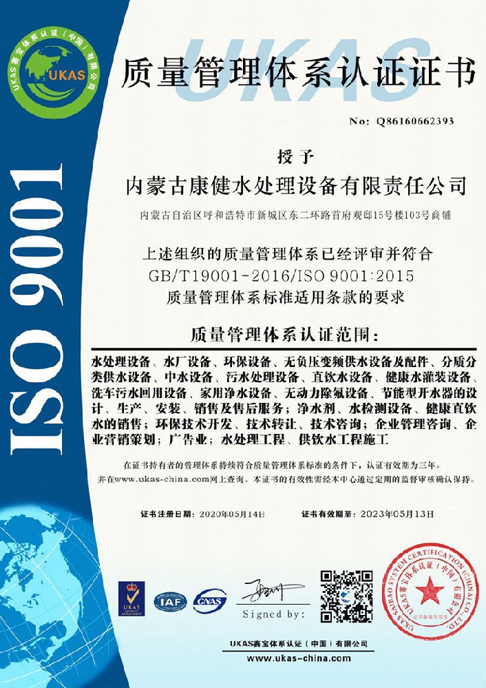 - 內(nèi)蒙古康健水處理設(shè)備有限責(zé)任公司是專業(yè)生產(chǎn)制造水處理設(shè)備、飲料設(shè)備、奶設(shè)備、殺菌設(shè)備、灌裝設(shè)備五大系列90余種配套產(chǎn)品。在反滲透、超濾、納濾、EDI模塊、等膜分離領(lǐng)域有著雄厚的技術(shù)實力,同時在水廠設(shè)計、中水回用、污水處理、分質(zhì)供水、無負(fù)壓變頻供水、鍋爐軟化水設(shè)備等領(lǐng)域有完善的技術(shù)團(tuán)隊和營銷網(wǎng)絡(luò)。公司坐落在遼闊大草原上美麗的首府——呼和浩特,是內(nèi)蒙古自治區(qū)唯一一家具有自主生產(chǎn)能力的企業(yè)。 “上善若水,水利萬物而不爭”康健水工自成立以來,始終堅持“改善水質(zhì)、造福人類、服務(wù)社會、產(chǎn)業(yè)報國”的企業(yè)信條,以致力于開創(chuàng)人類綠色健康生活為己任,秉承“關(guān)愛生命、責(zé)任至上”的企業(yè)宗旨,成就了享譽四方的國內(nèi)知名水處理企業(yè)。 水是生命的源泉、工業(yè)的血液、城市的命脈。水是不可替代的寶貴資源。節(jié)約用水,關(guān)注點滴 為節(jié)約水資源貢獻(xiàn)一份力量, 健康飲水,利在當(dāng)代,功在千秋! 只有在這里,才能領(lǐng)會水的精髓;只有在這里,才...